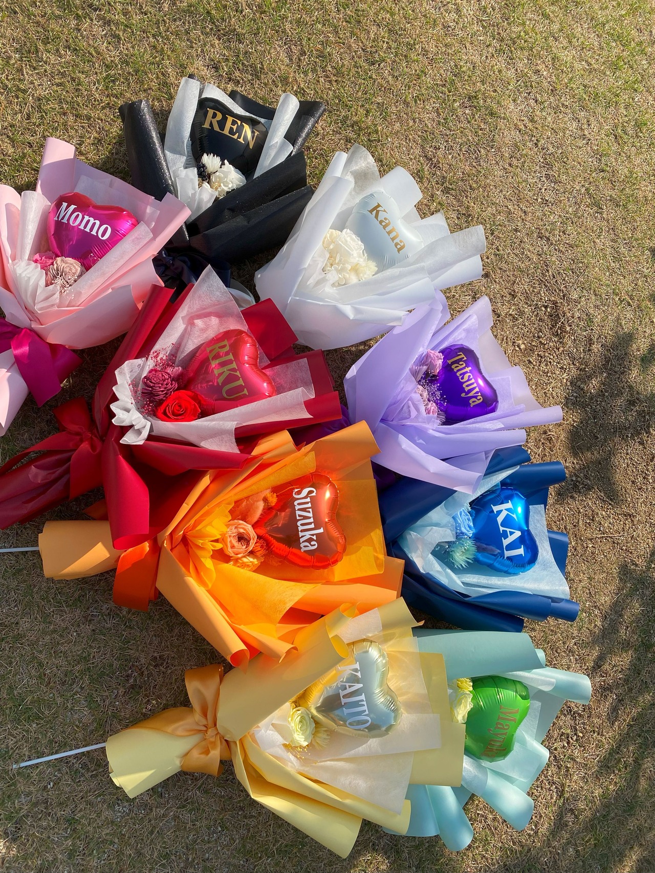 このバルーンブーケは、ライブの応援、誕生日、記念日など、さまざまなシーンで活躍します。