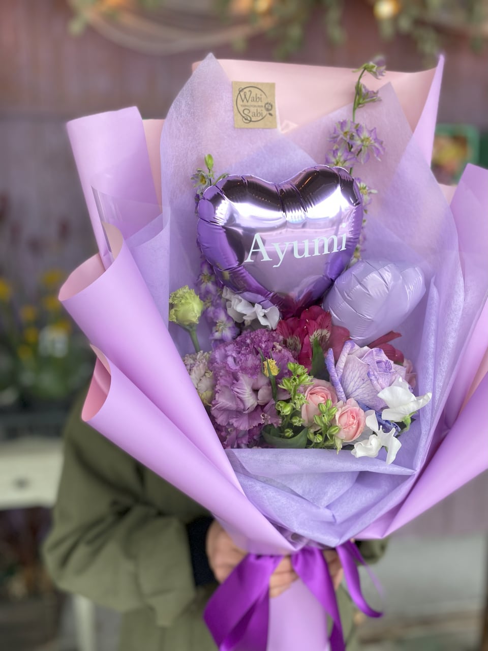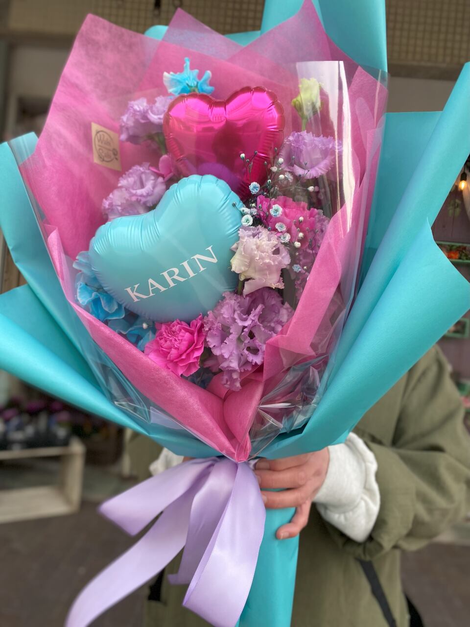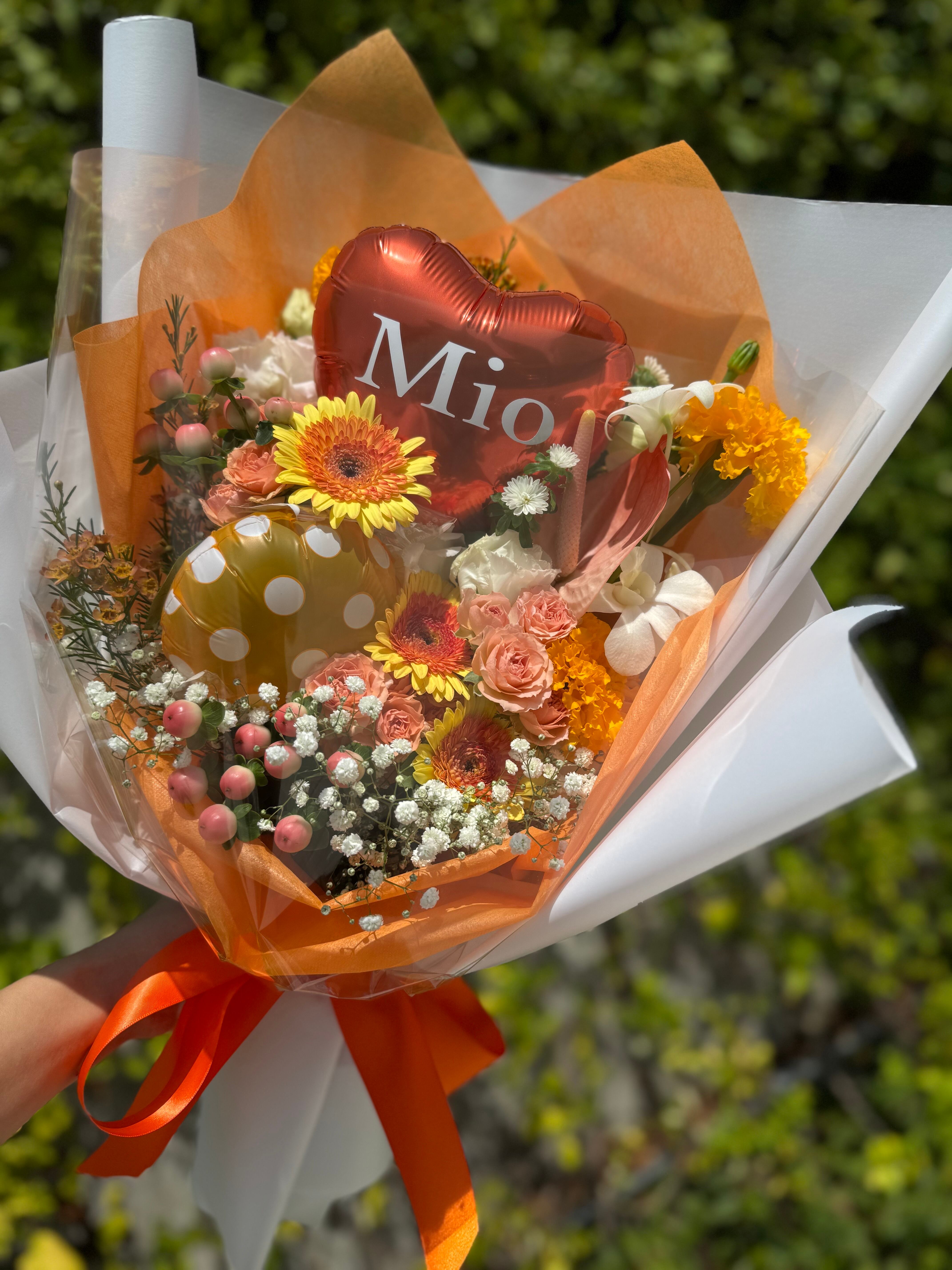 華やかで心温まる花束です。生花の美しさと、オリジナルのバルーンが融合した新しい形のギフトをお楽しみいただけます。